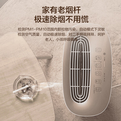 自动模式下可以灵敏检测空气质量,自动急速除烟更健康,一键散发负离子,门窗紧闭也可以很清新。