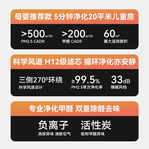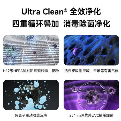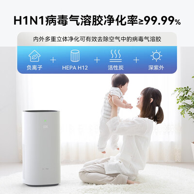 内置高等级HEPA滤层,对于空气中PM2.5和PM0.3的净化率高达99%,只需5分钟,就能让20㎡房间的空气焕然一新。