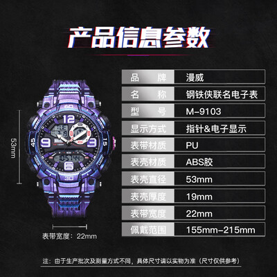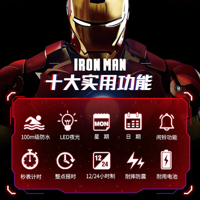 采用钢铁侠的造型设计,彰显出炫酷十足的气息。表带运用树脂的材质制作,防水性强,耐脏易打理。
