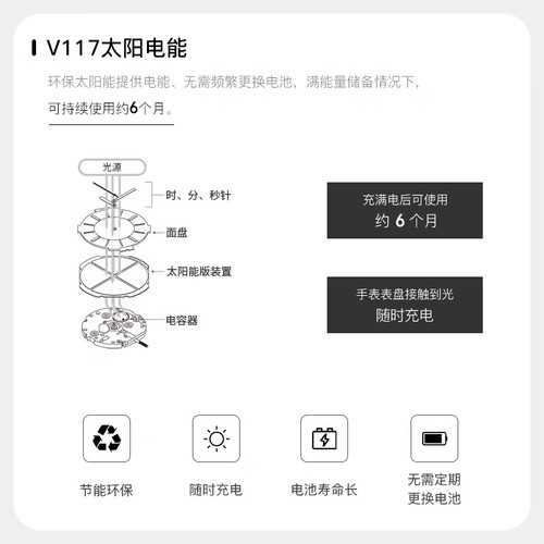 表冠采用不锈钢材质,使用过程中不容易生锈,能够更长时间佩戴;结合按钮开关表扣,坚固紧锁,更加省心。