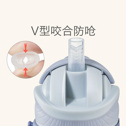 该款儿童水壶采用V型吸管设计,密封防漏,倒置不洒,防止漏水。