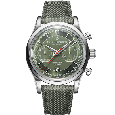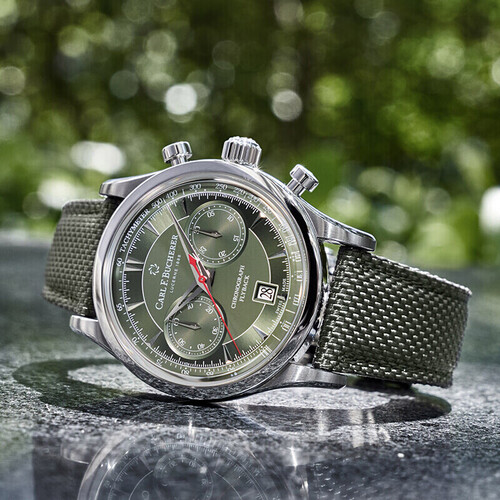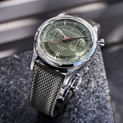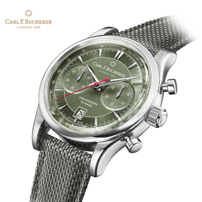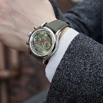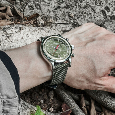 清新简约的橄榄绿盘面,搭配醒目红色计时秒针,读时清晰明了,也能营造视觉亮点。纹理清晰细腻的编织表带,佩戴亲肤舒适。