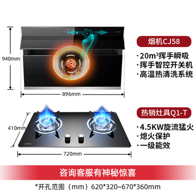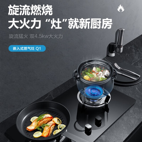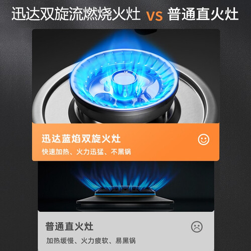 搭载纯铜的电机,轻音低噪动力强劲,清除油烟厨房靓丽如初。采用强劲的旋流火,提供充足的热量,炒菜更加游刃有余。