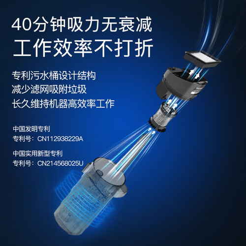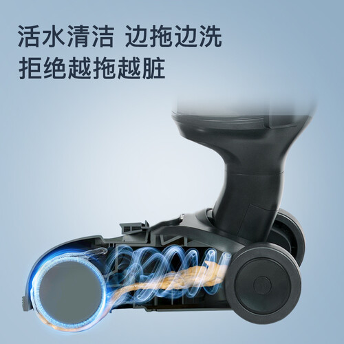 增压式地刷,清水箱降低重心,增加地刷的压力,牵引拖地轻松不费力。擦地吸拖洗一步到位,一次搞定全屋地面,洁净如新。