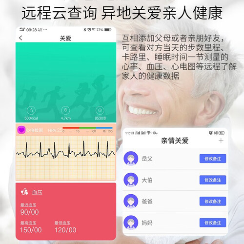 采用AI技术,能够进行智能校对,同时结合大数据技术,能为用户定制专用模型。智能监测血压与心率,让你的健康状况一目了然。