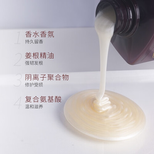 配方加入姜根精油,有效成分能被毛囊及发根容易吸收,达到强韧发根的效果,令头发不易断裂。调配香型怡人,使用后散发典雅香气。
