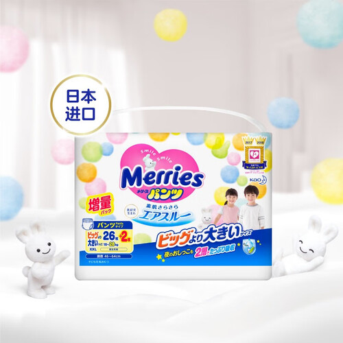 2.5倍弹力腰围,弹性十足,可根据宝宝腰部围度自行调节松紧,告别难看勒痕;双层吸收体,稳稳兜住尿液,呵护宝贝睡眠。