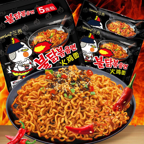 从韩国进口受到热辣追捧的火鸡面,调料中所有的葱蒜、辣椒及海鲜产品等各种面汤原料的农水产品,都是由绿色种植场直供。