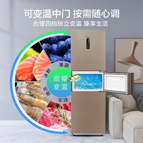 美的 电脑控温三门冰箱