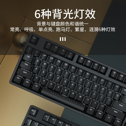 独特的定时效果,体现出不一般的制造工艺。键帽经过喷漆处理,手感细腻有光泽,美观又实用。