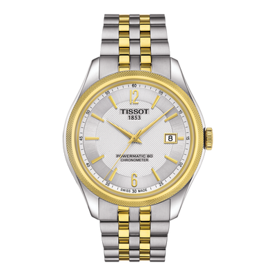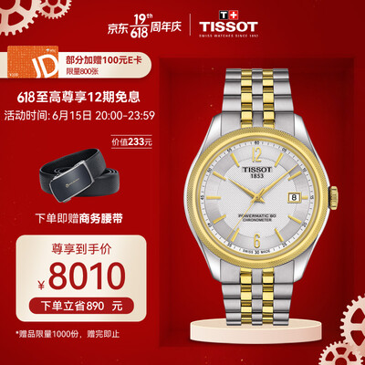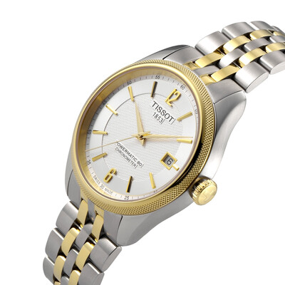 天梭宝环系列造型展现男士大气本色,41mm的超大尺寸表盘配合金色的刻度更显闪耀质感,自动机械机芯让时间更准确。