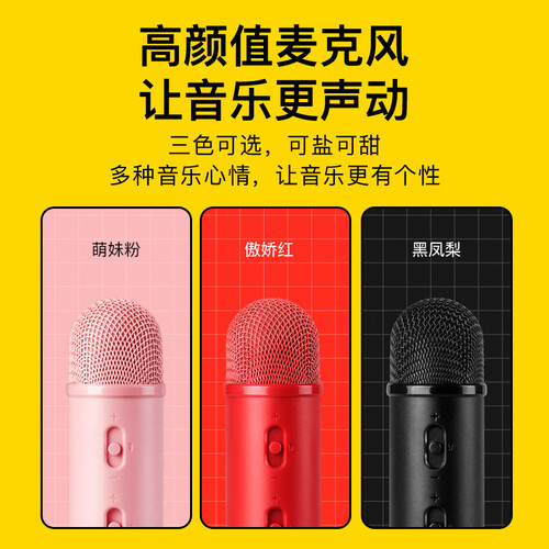 内置智能音频处理芯片,拥有录音棚级品质音效,告别干唱。此外采用电容式音头,灵敏度更高,可清晰记录每一个音符。