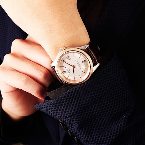 表针是金色不锈钢柳叶,柳叶柔软,但是不锈钢坚韧,儒雅大方又不失型格,用巴黎钉纹进行装饰,大方简约,个性时尚。