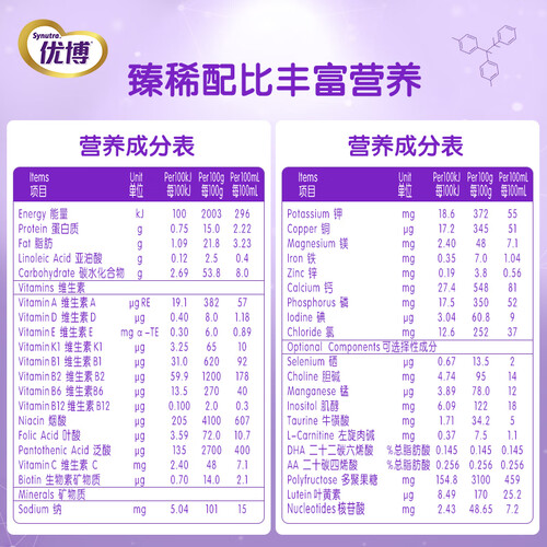 富含膳食纤维,能够促进宝宝肠胃健康蠕动,促进小肚肚消化,不易产生便秘现象。添加五种核苷酸成分,有助于脑部发育健康。