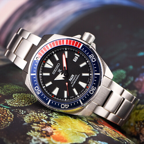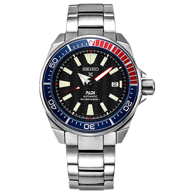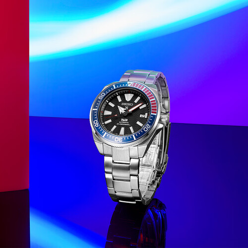 特色的红蓝圈设计,颠覆了常规腕表的单一感,十分出众。表盘指针刻度使用特制的发光材料,夜晚也能轻松读时。