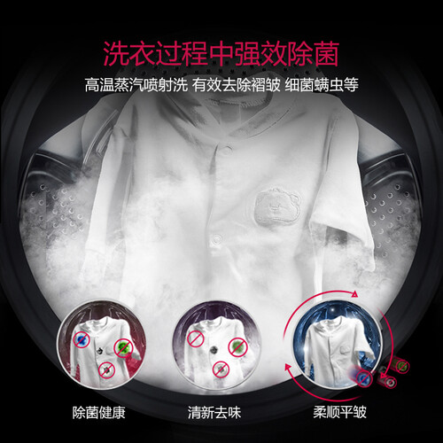 上下分层设计,分开洗护家人衣物,避免构成二次污染。速净喷淋技术,多方位清洁,角角落落的脏渍都可有效搞定。