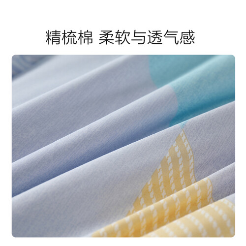 全棉织造面料触感柔软细腻,透气性佳,能很好地保持肌肤干爽,每一夜都舒享好眠。配备防滑绑带设计,稳稳固定被芯。