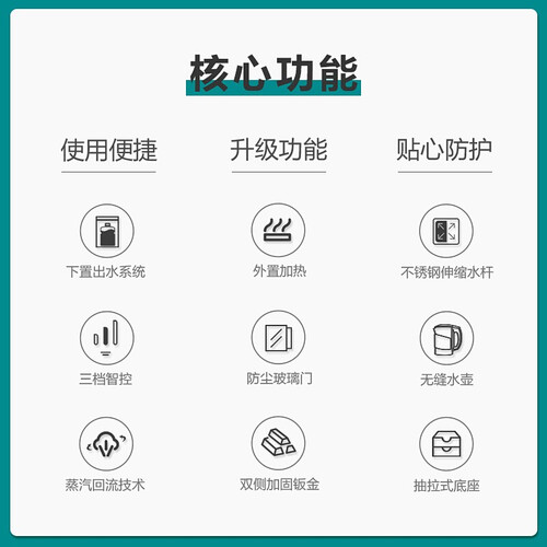 采用下置式水桶设计,平稳可靠,换水更加轻松。抽拉式接水盒,清理积水更方便。一体拉伸无缝水壶,不易藏污和漏水,更方便清洁。