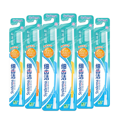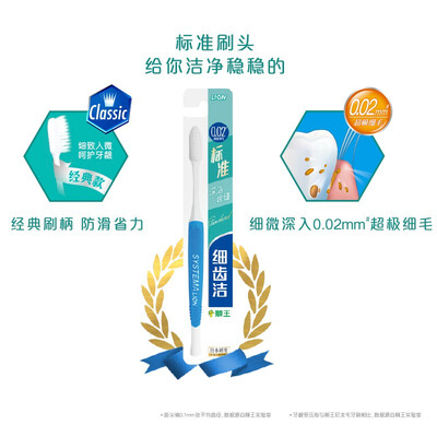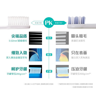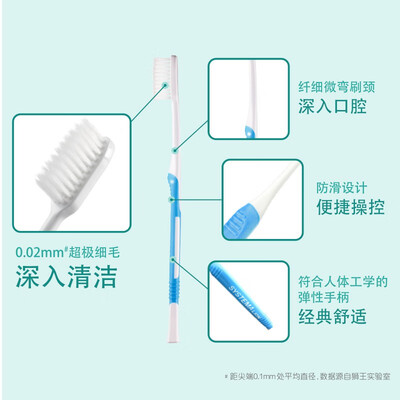 符合人体工学设计的弹性刷柄,缔造更舒适的握持体验,融合0.02mm超细的刷毛,深入齿缝,有效去除食物残留与污物。