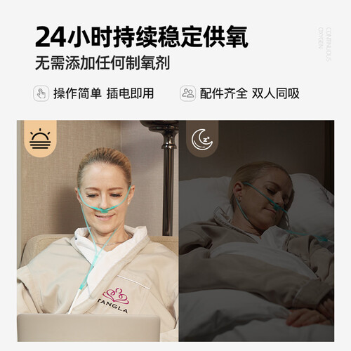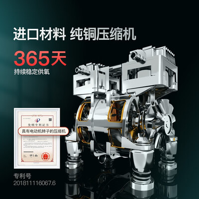 采用法国原装进口分子筛,氧浓度更高更纯净,满足更多补氧需求。内置纯铜无油压缩机,动力强劲,噪音低,散热快。