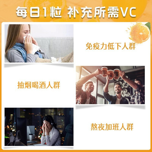 高浓度维生素咀嚼片,每片含1000mg高含量的维生素C和多种珍稀草本精华。高活性,更易吸收利用。