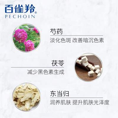 萃取东当归、芍药花等植物美白因子,起到让肌肤舒缓,润养和提亮的作用,从而帮助提升肌肤光泽度和通透性。