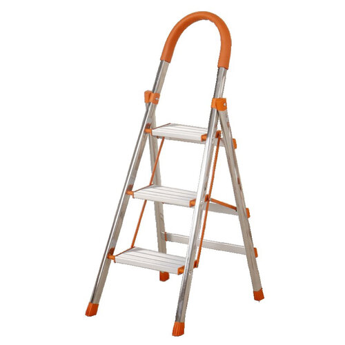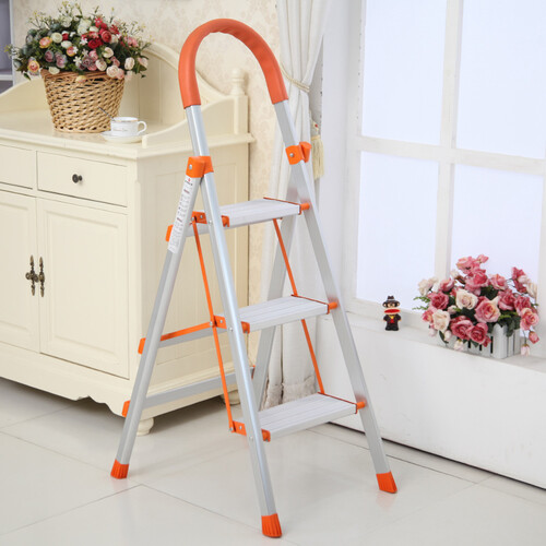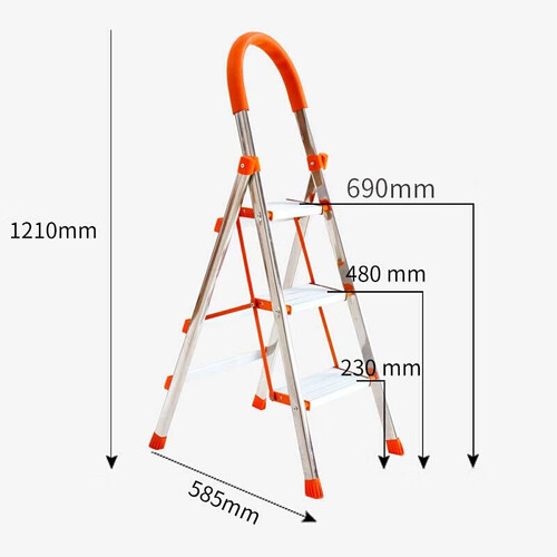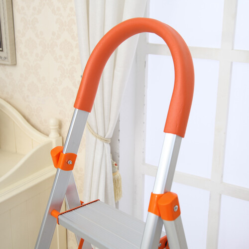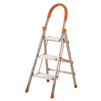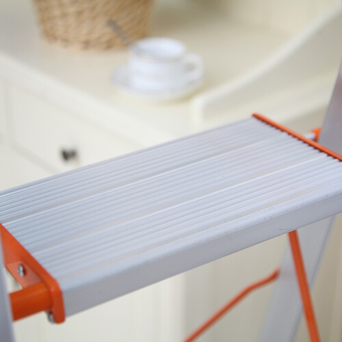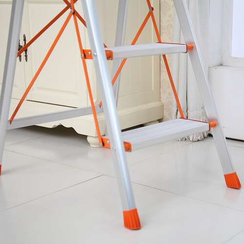 不锈钢材质制作的踏板,良好的光泽感,让你经久使用也光亮质感。搭配马蹄形的套脚设计,轻松增加梯子的牢靠性。