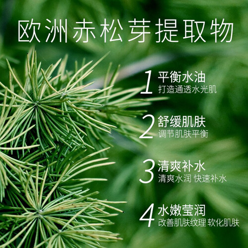 清爽的欧洲赤松成分,可以减少肌肤油腻感,改善水油平衡。千层叶提取物,轻松润滑肌肤不油腻,带来健康肤质。