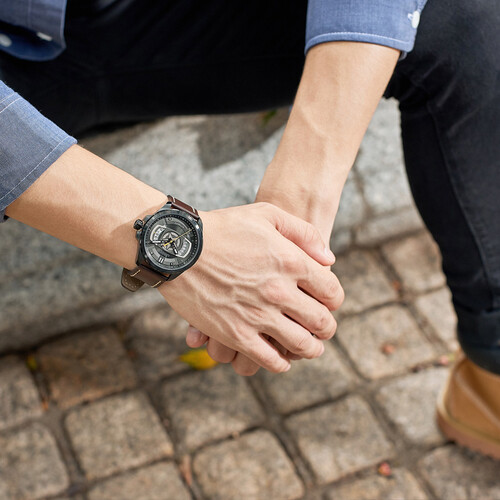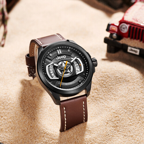 这款手表的表盘采用多层次式的立体盘面设计,设计粗犷霸气。采用夜光指针,白天储能,夜间发光,实现清晰读时。