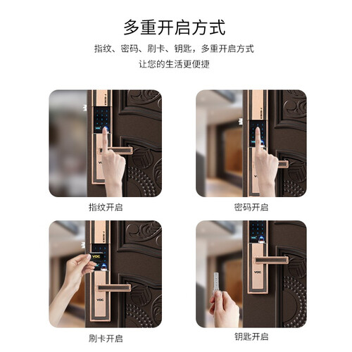 采用LED全触摸面板,光线柔和,夜间也可轻松开门。虚位密码设计,有效防止密码泄露,解锁安全。