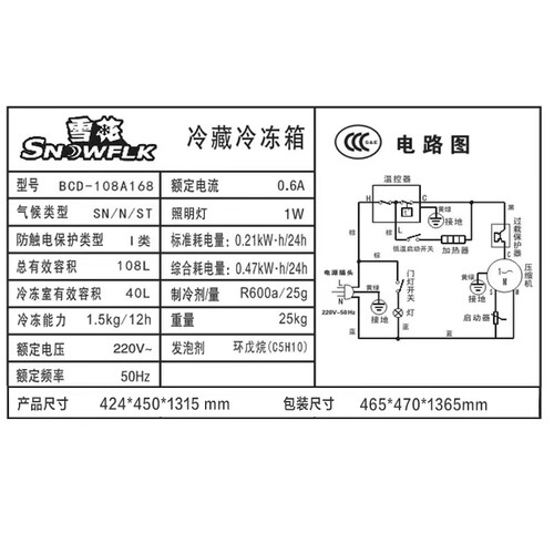 雪花 双门冷藏小型电冰箱