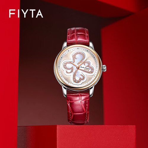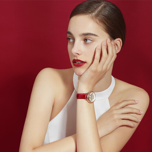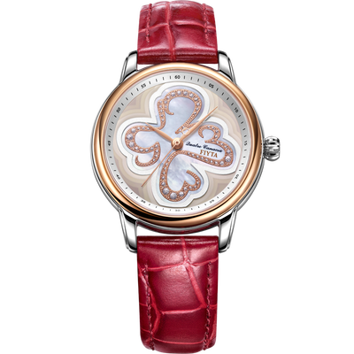 四叶草表盘设计,以闪耀亮钻点缀,营造出华丽轻奢的浪漫视觉,与红色皮革表带相互搭配,轻松衬显出优雅甜美气质。