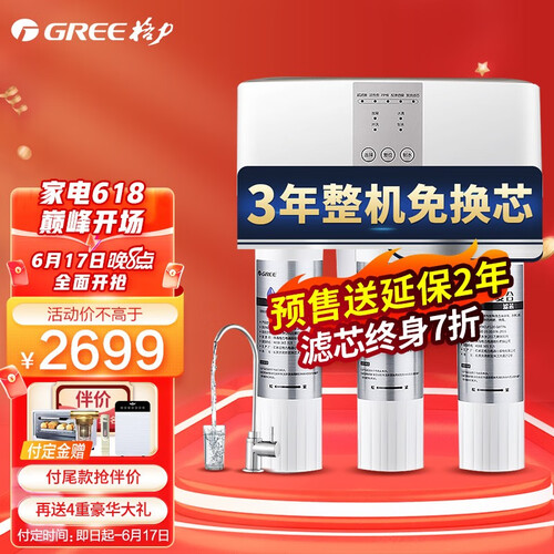 五芯六级强效过滤,净化效果出众,安心直饮更健康,母婴适用;三年长效反渗透膜,滤芯可自动冲洗,减少堵塞,使用寿命更长。