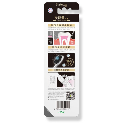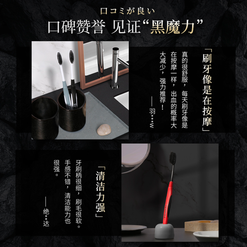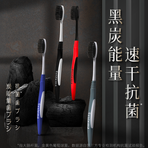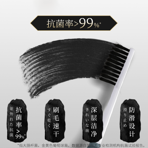 刷毛蕴含备长炭成分,可以减少细菌滋生,口腔环境更健康。配有橡胶材质的手柄设计,可带来更舒适的握感,不易滑落。