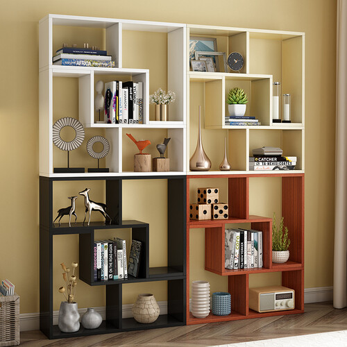 采用组合书架格子设计,摒弃传统书柜,可根据不同家居风格自由组合搭配;加厚板材,承重能力强,置物更安全。