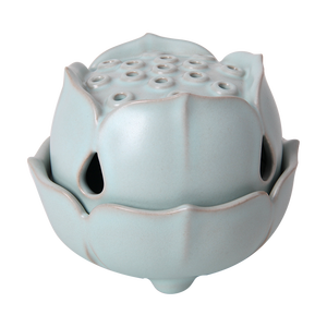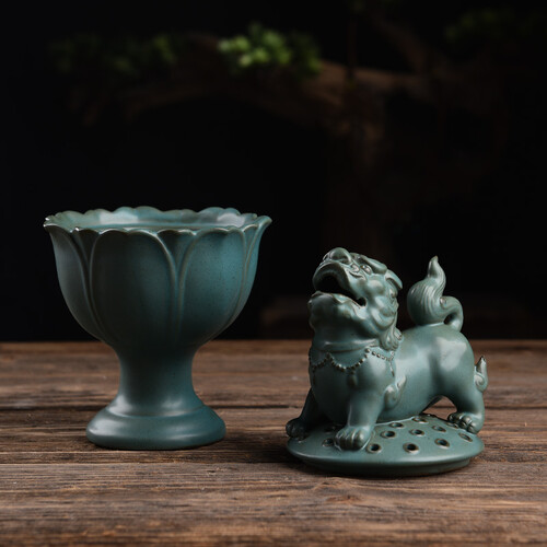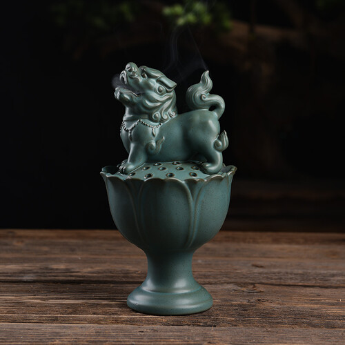 莲花狮子香炉,通过优质泥土烧制而成,莲花底座上搭配狮子。幽幽清香从狮子口和鼻冒出,沁人心脾,放松身心。