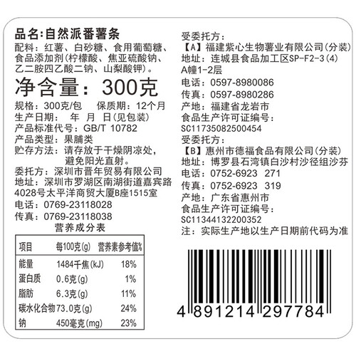 红薯条大小适宜,更加齐整均匀,颜色金黄还更加纯正。没有其他添加剂,香甜又可口,适口软糯还不会粘牙,老少皆宜。