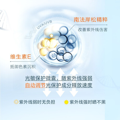 6重周密呵护,10小时抵御紫外线,水乳质地易推开,隔离微尘污染,为肌肤注入水分,精华提亮,免卸妆洁面,肌肤轻盈不怕晒。