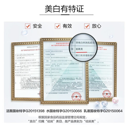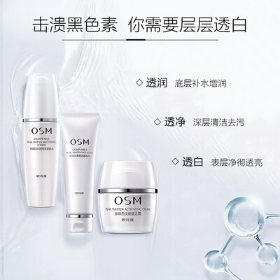 珍珠多肽、五种植物精粹和烟酰胺,是整个护肤套装的主要成分,在美白肌肤的同时也有补水保湿的作用,干燥肌也可以使用。