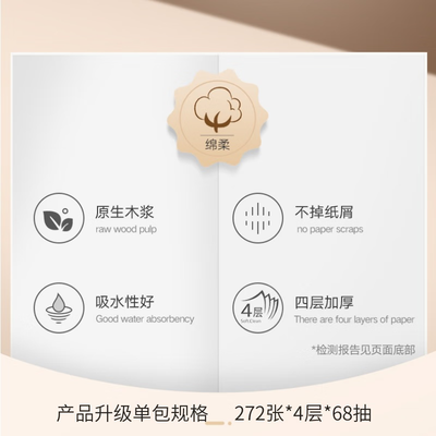 抽纸通过喷浆制作工艺制成,纤维均匀,纸面纹路清晰,纸质紧密,触感厚实,具有较强的拉力,日常擦拭更给力。