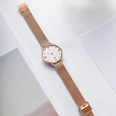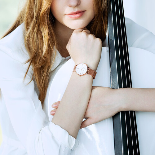 米兰编织表带材质,质感光滑,贴合肌肤更舒适。56颗皓石镶嵌表圈设计,精致点缀,光泽耀眼夺目,佩戴十分吸睛。