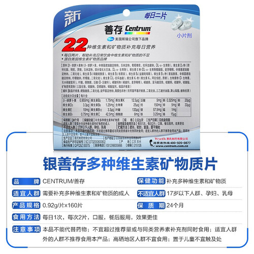 22种维生素和矿物质,含多种关键营养元素,帮助弥补膳食营养摄入不足,小片剂易吞服,更适合老人服用,餐后服用效果更佳。