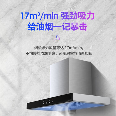 895mm的立体深腔拢烟,让油烟无处逃窜,有效防止扩散。17m³/min的强劲吸力,厨房持久清新,让你不抗拒烹饪。