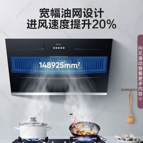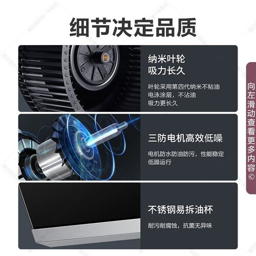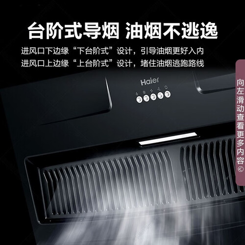 内腔经过空气动力学原理设计,风阻变小,更快排烟,享受洁净的厨房。采用黑晶玻璃面板设计,清洁方便打理更轻松。