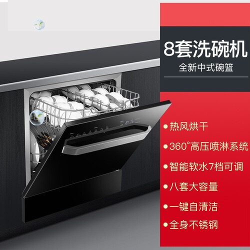 拥有8套大容量,一次可以洗净更多碗碟,适合年轻家庭使用。360°上下式双喷臂,全面喷淋冲刷,剥离黏重油污。