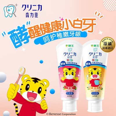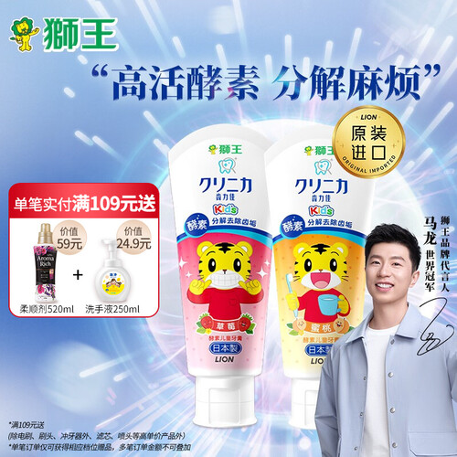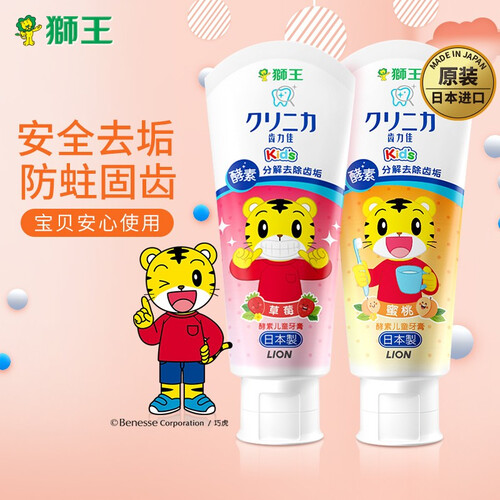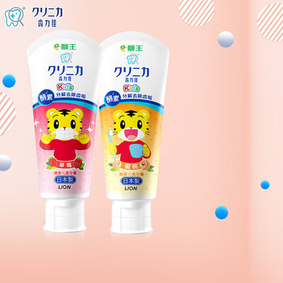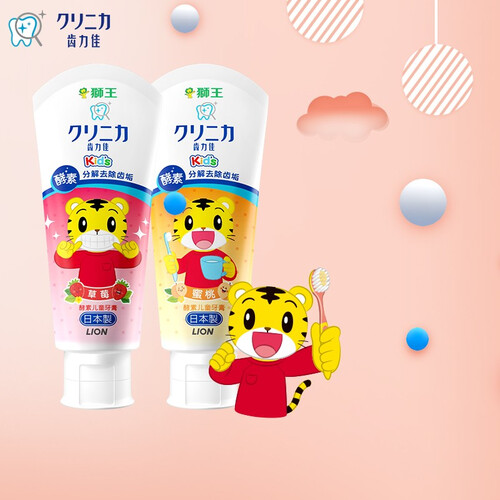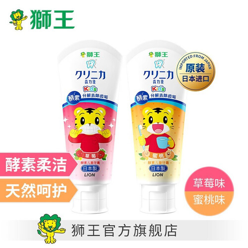 草莓蜜桃双支装儿童牙膏,日本原装进口,富含酵素成分帮助孩子攻克各种口腔问题,并能有效预防牙结石哦。