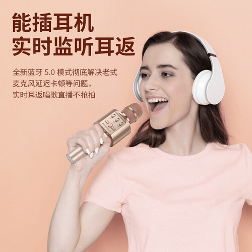 支持蓝牙传输,稳定高速无延迟。玫瑰金的配色方案,时尚炫目。搭载3D环绕立体音效,释放出出色的音效,清晰无干扰。