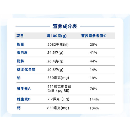 采用了细心研发的营养配方,营养更加全面均衡,全方面的呵护身体健康。高钙成分独特,补充全家钙质,营养充分更全面。