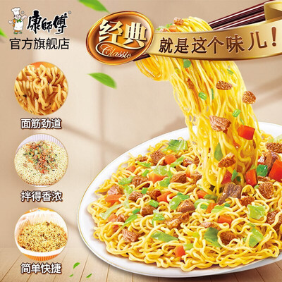 康师傅干拌面甄选小麦面粉,用匠心工艺制成筋道面饼,荤素均衡搭配,香浓美味,敲打你的味蕾,吃到停不下来。