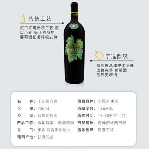 瓶口采用传统工艺,具有瓶口小孔,能够确保陈酿的酒正常呼吸发酵,口感更佳。通过国际严苛的质量安全检测认证,保障质量。